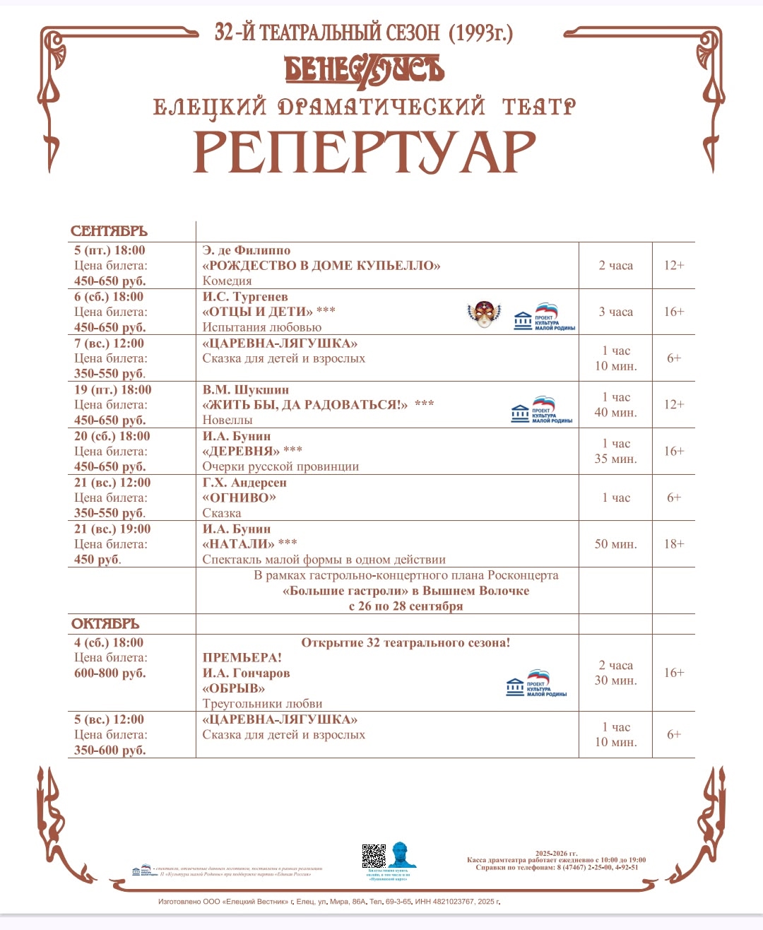 тел.: 8 (47467) 2-25-00 — касса театра